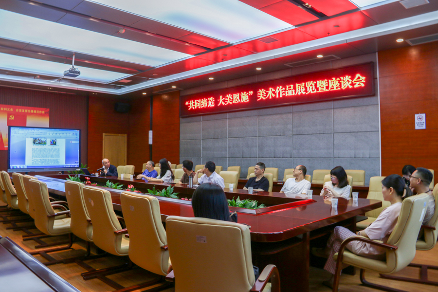 开幕式后,参会人员参观了美术作品展览。座谈会上,美术与设计学院院长、州美术家协会副主席石庆秘进行了主题分享,与会人员就恩施州民族美术作品发展进行探讨。