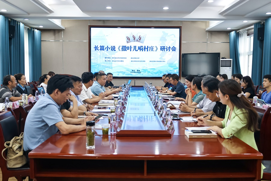 6月26日,由湖北省文艺评论家协会与湖北民族大学联合指导,湖北文艺评论基地、湖北民族大学文学与传媒学院以及桂园文学社共同承办的《撒叶儿嗬村庄》长篇小说研讨会顺利在校举行。此次活动吸引了来自中国作家协会、湖北省文艺理论家协会、恩施州作家协会、恩施州文艺理论家协会,以及湖北民族大学党委宣传部、文学与传媒学院等相关单位的负责人,还有作者、评论家代表,以及文学与传媒学院的硕士研究生和桂园文学社的会员代表等共计60余人参加。