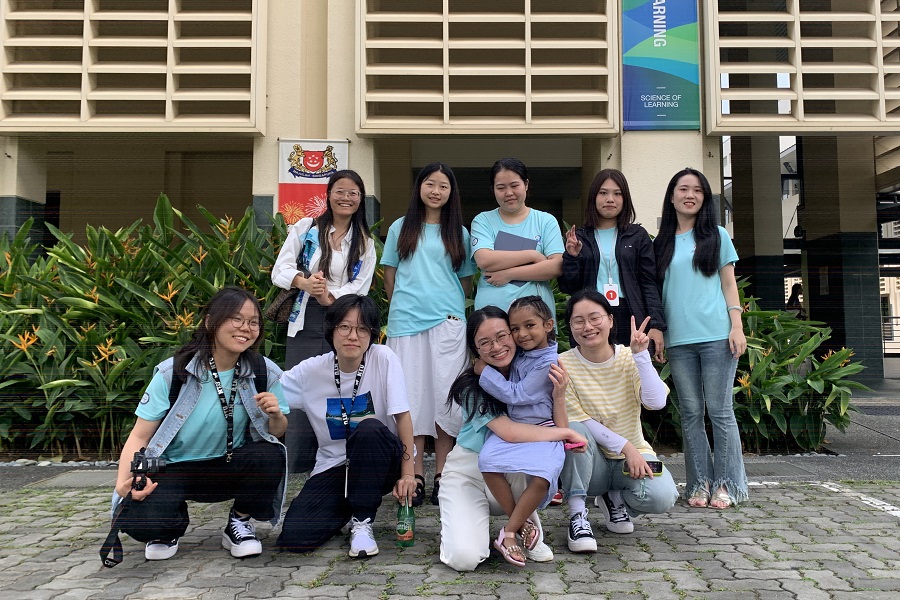 湖北民族大学参加新加坡夏令营学生和当地居民合影