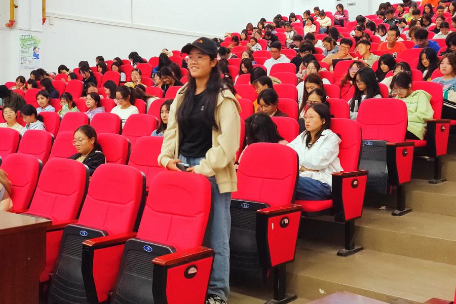 10月19日,在修远楼5A207教室,外国语学院国家奖学金获得者熊诗英、国家励志奖学金获得者张慧、社会实践优秀个人肖曾洁围绕大学期间的学习、工作和实践经历,向大一新生宣讲自身的励志成长故事和奋斗历程。当被问及如何克服在学习中遇到的困难时,熊诗英说道:“求学的道路必定不会是一帆风顺的,面对困难时,我会反复告诉自己,坚持下去!勇敢一些!坚持就是胜利,就是这样的心态,让我渡过了一次又一次的难关。”熊诗英的回答鼓舞了现场每一位新生。