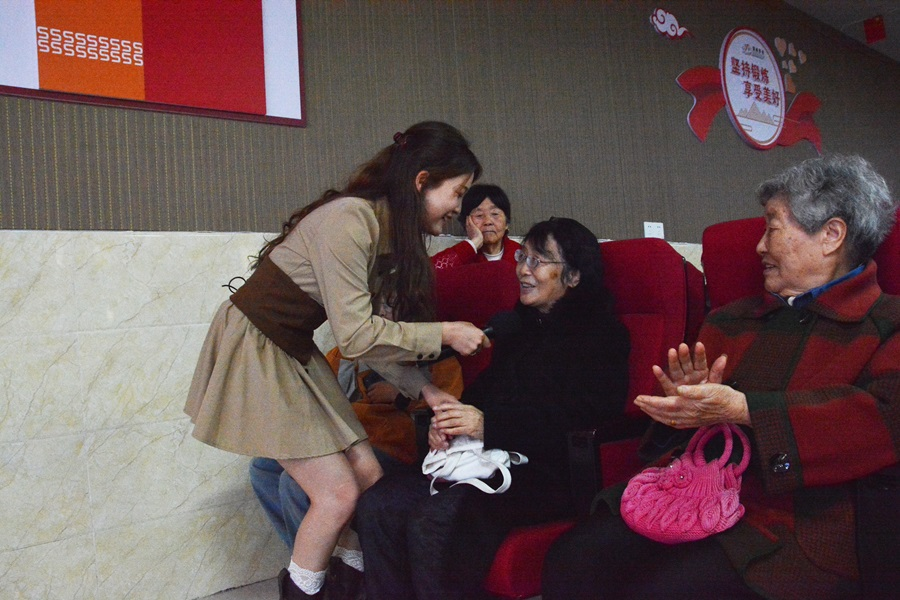 学生为老人表演节目