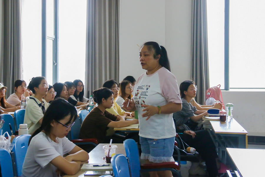 周韬为了让学生能学有所用、有效接收知识,在备课时首先制定了“知、行、能、德”的四维目标,主动与学生沟通交流,共同打造“专属化”课程。她以学生为中心,通过设计经典诗词、古典戏曲的观摩、实训、游戏以及知识图谱,结合艺术作品和历史背景,来增加学生记忆方式,让课堂“活”起来,以达到更好的学习效果,在教学创新中实现教学相长。有时候,学生的讨论和分析,也让周韬从中得到启发,这样的“双向奔赴”,让她和学生实现了共同成长。周韬经常这样说:“教学需要创新,创新的最终目标是为了让学生将生硬的背诵方式转变为主动式、体验式的理解。”